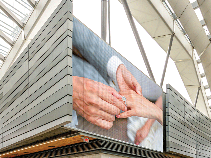 In addition to design, this technology provides a fully engineered system with attachments back to the building. Technical support is also included through a dedicated project manager who will walk the customer through the design process, from material selection to final image and layout approval. Construction Specialities (CS), innovators of this system also offer the benefit of single-sourced responsibility.