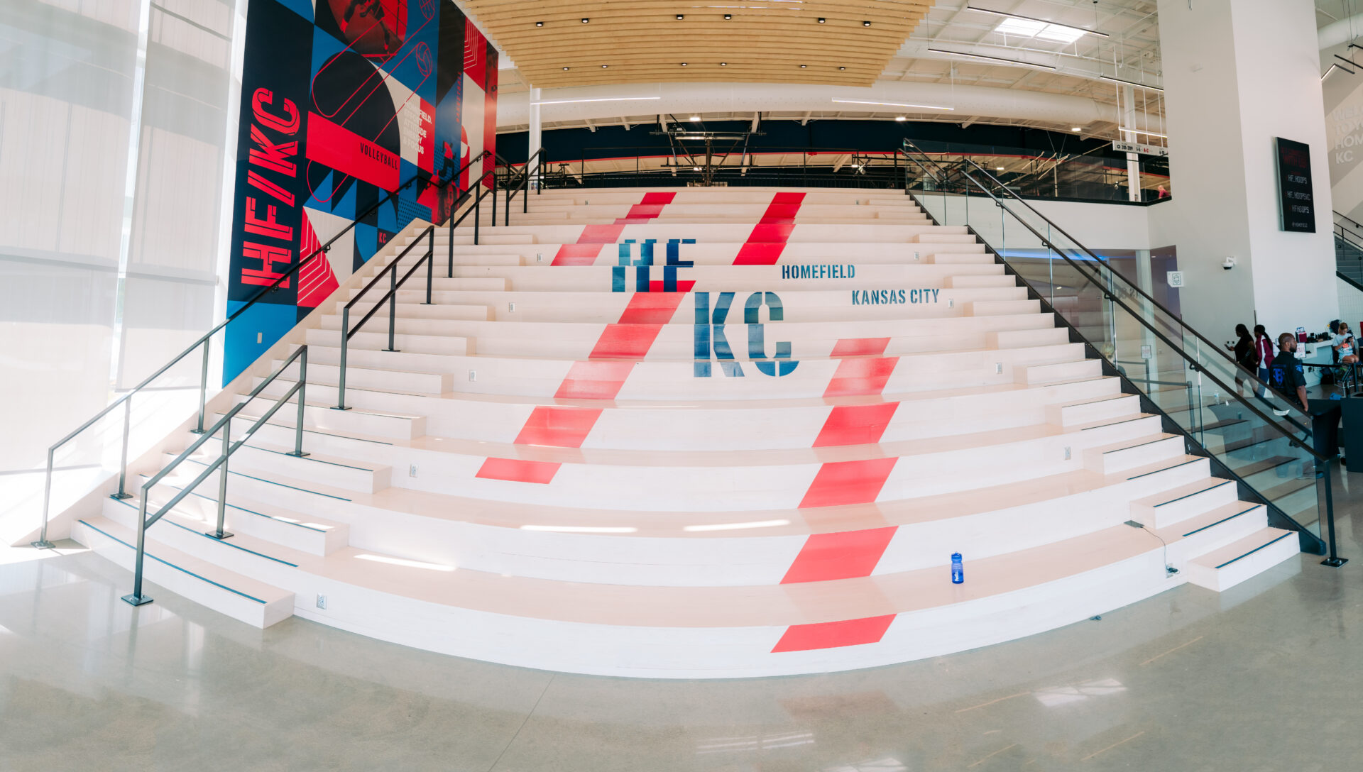 The design of Homefield KC supports high-capacity configurations for national-level volleyball and basketball tournaments. Seating systems provided by third-party manufacturers integrate seamlessly with the metal railing infrastructure, contributing to a unified experience for athletes and spectators alike.