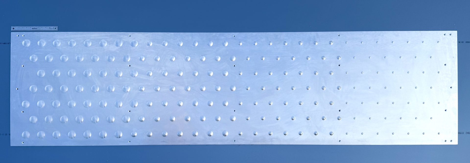 Texturing architectural single skin metal has been an option for decades, most commonly done by rolling a coil of metal through embossing dies, which serve to make lighter-gauge metals more rigid and higher performing while visually adding interest and helping counteract the perception of oil-canning. Texturing can bring a whole new level of detail and interest to metal, whether through a consistent pattern such as quilting or cross-hatching, micro-embossing a dull and dirt-resistant appearance, or producing deep and interesting textures, all helping visual appeal and to make the base metal more rigid. To cut, especially when using deeper textures, advanced lasers have the ability to sense the torch’s proximity to the material and thereby float the head over the texture, ensuring accurate and clean cuts while preventing damage to expensive parts.