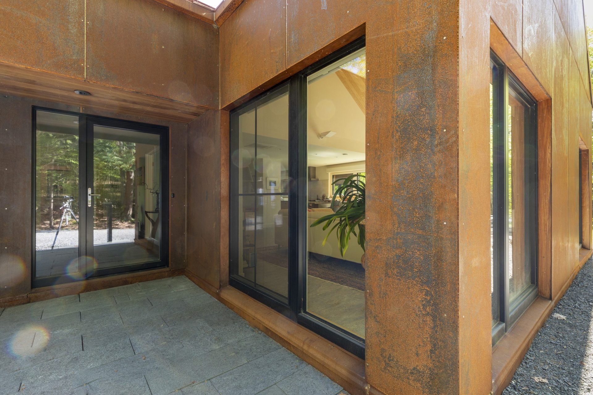 Originally developed by U.S. Steel in the 1930s for corrosion resistance and tensile properties and utilized in coal wagons and shipping containers, this material began to appear in architectural uses in the 1960s. While the material surface appearance is limited to its rust-like patina layer, the stability of the material, the availability of large sheets and thicker gauges, longevity, and the formability of A606 make it a great choice of material for either monolithic appearances or used as an accent. Either way, the properties of A606 lend themselves to carrying the aesthetic off the building and incorporating the material into barriers, signage, planter boxes, and hardscape. A606 is produced with less energy compared to other corrosion-resistant steels and can be fully recycled or repurposed at the end of its lifecycle without loss of material properties.
