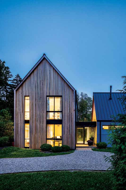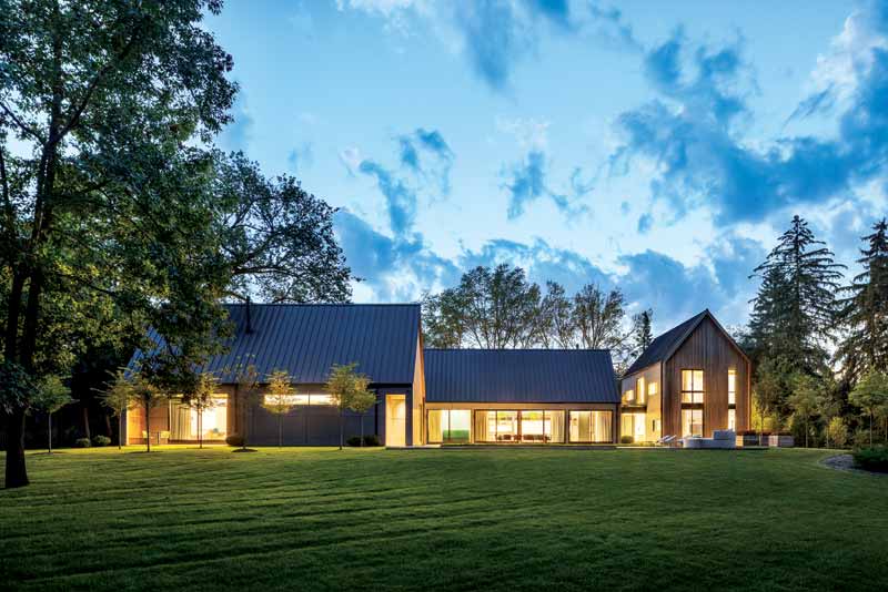 Tucked away on a private park-like 1.4 ha (3.5 acre) in Franklin, Mich., Briarcliff has been described as “a house in two acts.” Balancing a historical sophistication with a playful interior, it is perfect for the residents who are big on music and theater. The home’s design was inspired by rural Michigan farmsteads—collections of gabled-roof structures built over generations. These familiar forms connect the home to its historic context, but modernized by building techniques, materials, and innovative detailing.