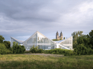 After several attempts at revitalization over the years, the state capital of Magdeburg authorities endeavored to save the multipurpose venue, which was given monument protection status in 1998. Scheduled in two phases with Gerkan, Marg and Partners (gmp) Architects commissioned to do the work, restoration on the Hyparschale lasted from 2019 to 2024.
