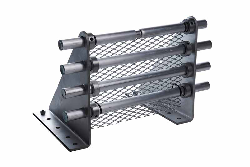 Dark grey rods and perforated metal make up the snow fence with ice screen.