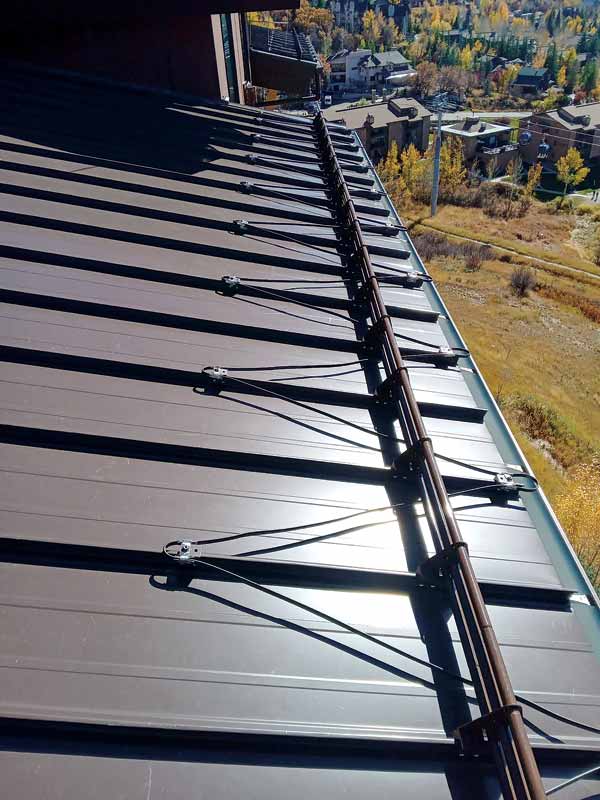 “We used this service for about 40 projects last year, which allows us to build our systems with confidence,” says Lujan. “For this project we used 2,200 snow guards and 137 m (450 lineal ft) of snow fences. Then, after that added a heating cable to keep the roof eaves and gutters warm enough to stop ice from forming and building up on the roofs. We kept the cable in place with roof clips and heat tape.”