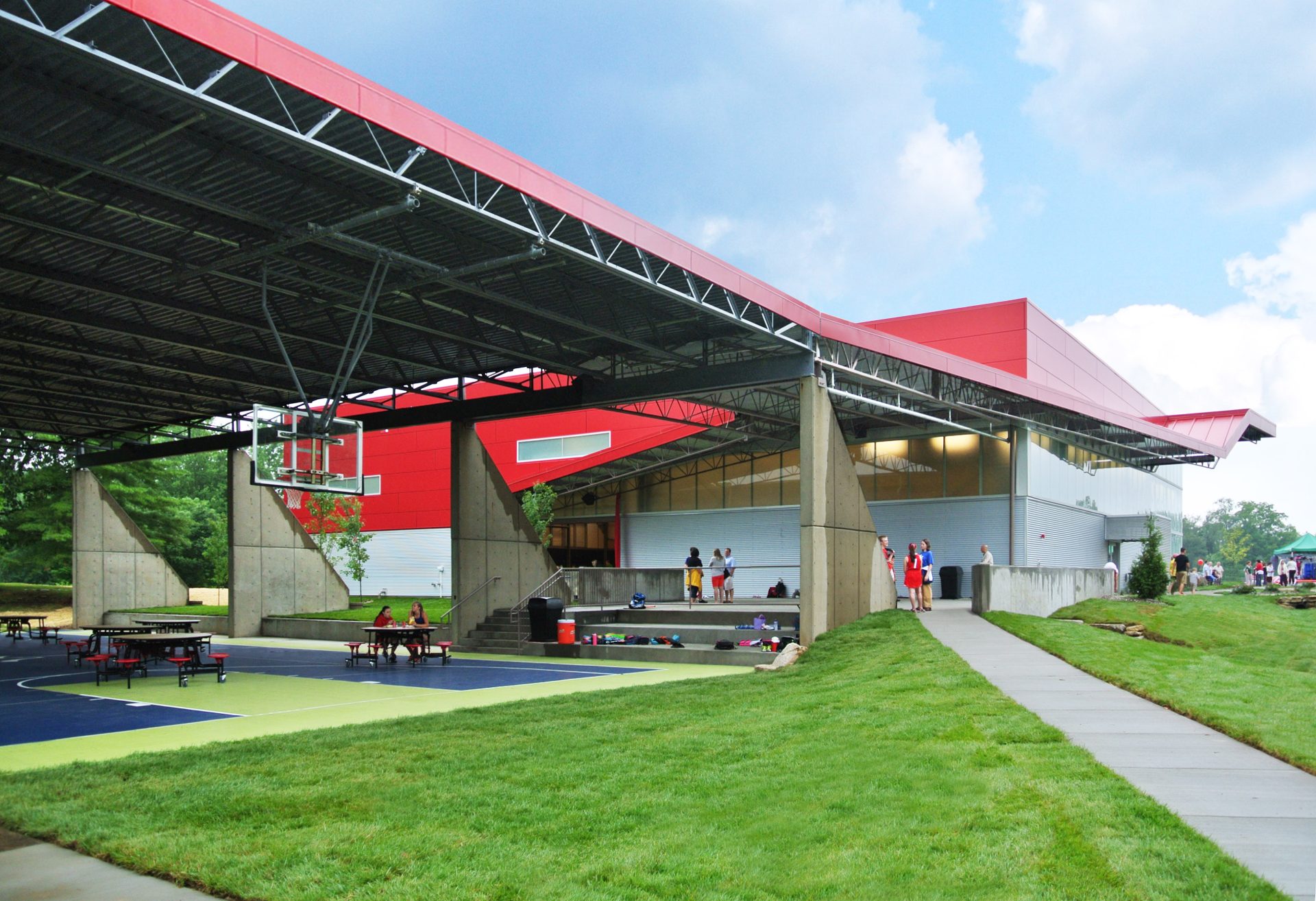 A prime example of pod a + d’s adaptive reuse in action is the St. Francis School athletic facility, which began as an aged barn—a pre-engineered metal building (PEM)—that detracted from the overall look of the 19.4-ha (48-acre) campus. The structure acts as a focal point for the school, and thus the firm’s large-scale retrofit offers a refreshing building identity not only for the structure but also for the campus as a whole.