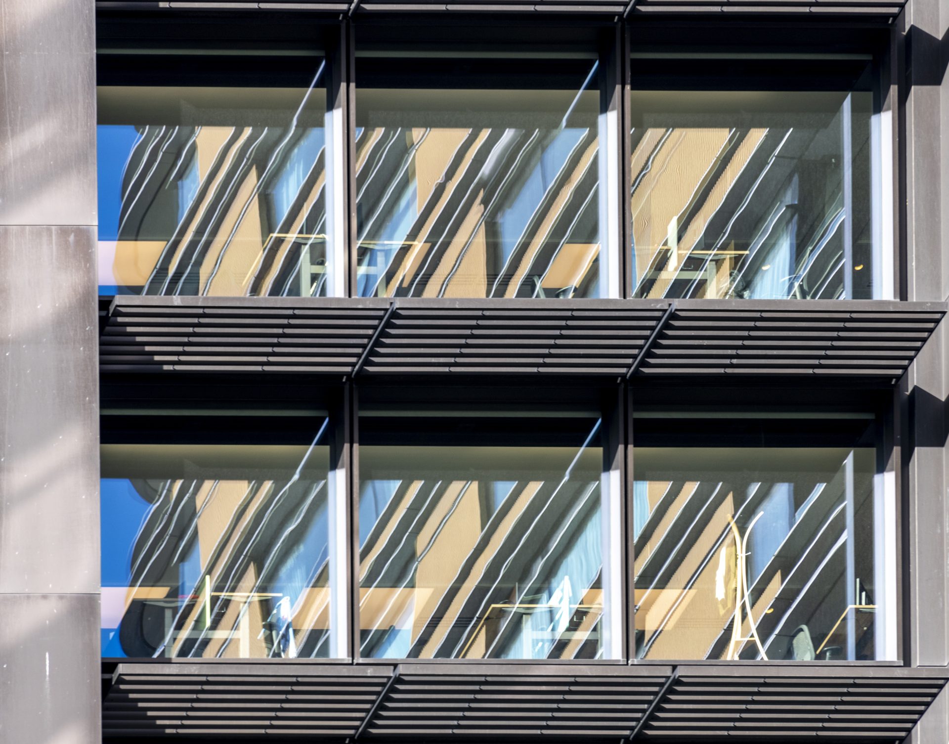 This image displays metal sun shading on a building's facade.
