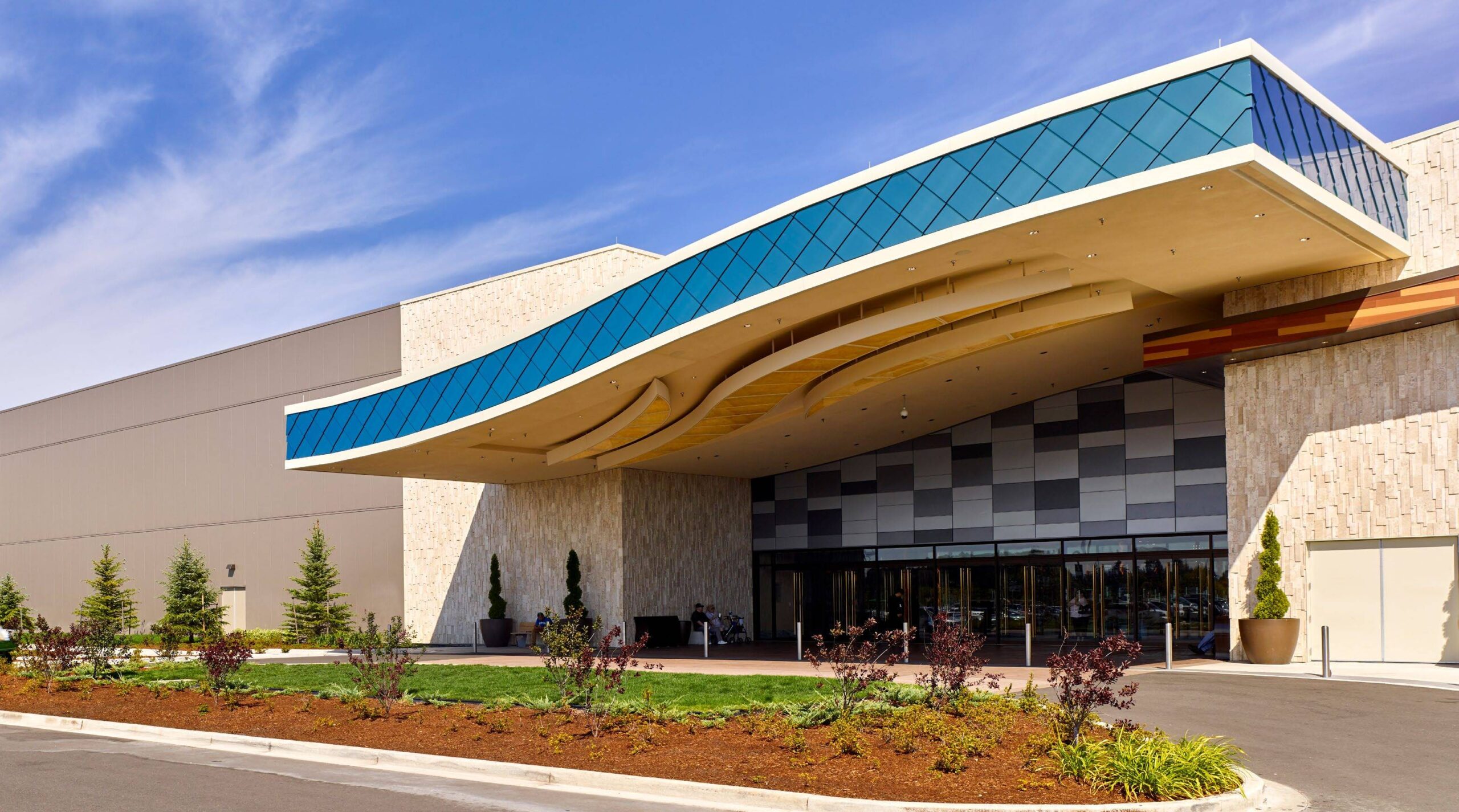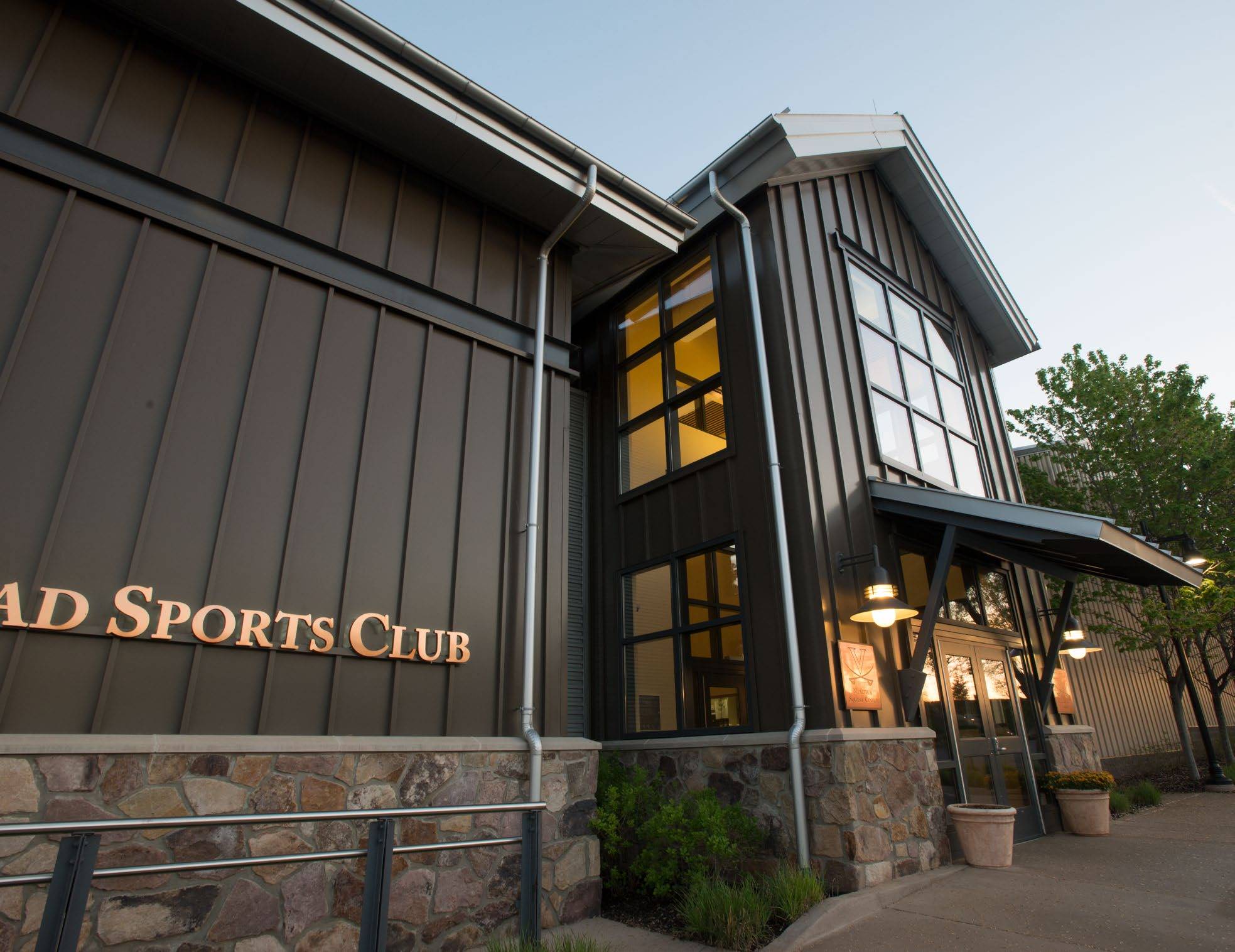 A combination of insulated metal panels (IMPs), glass, wood and...
