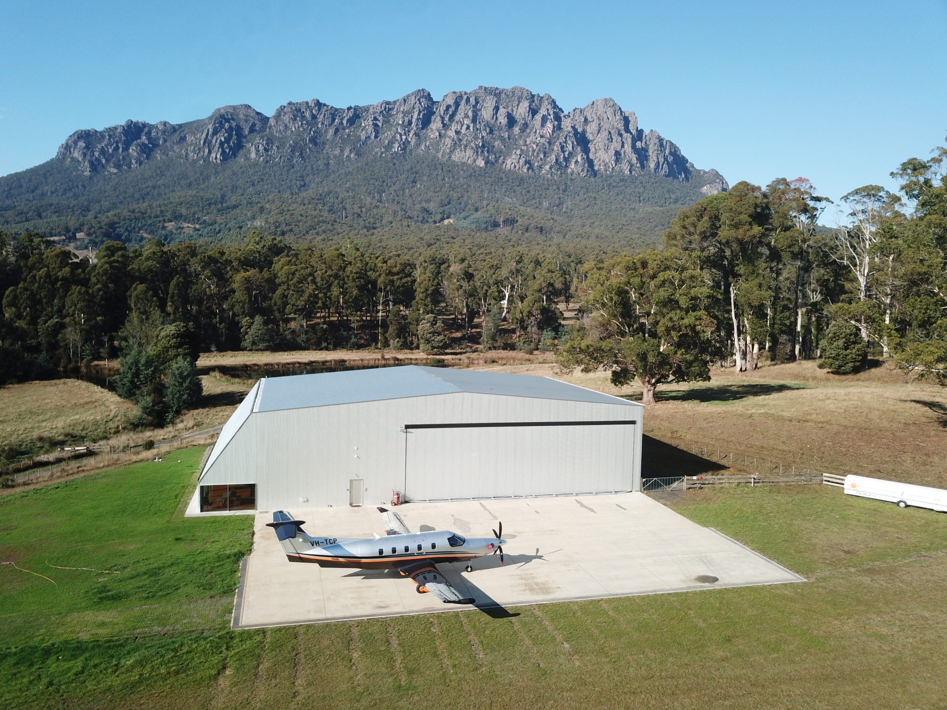 A new steel hangar revolutionizes the aviation storage on an 80.9 ha (200 acre) property at the Vale, located in northwest Tasmania at the base of Mount Roland.
