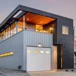 Airkat Airpark 9AA9, a private airport located outside Haines, Alaska, features a new hangar with an optimized functional design, supported by a bifold door and black sheet metal cladding.