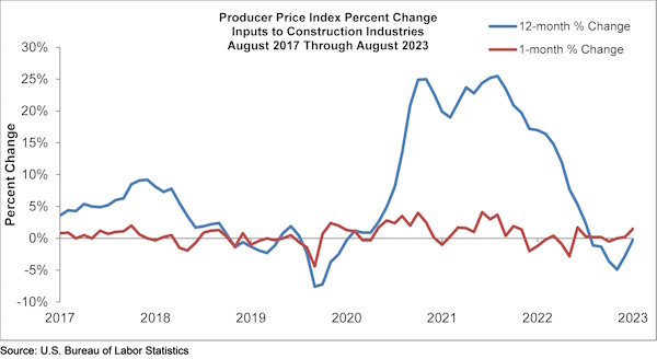 Construction input prices rose 1.5 percent in August compared to July, according to an Associated Builders and Contractors (ABC) analysis of U.S. Bureau of Labor Statistics Producer Price Index data. Nonresidential construction input prices also increased 1.5 percent in August but are up just 0.2 percent from a year ago.