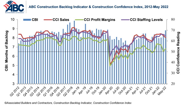Associated Builders and Contractors reports today that its Construction Backlog Indicator increased to nine months in May from 8.8 months in April, according to an ABC member survey conducted May 17 to June 3. The reading is up one month from May 2021.