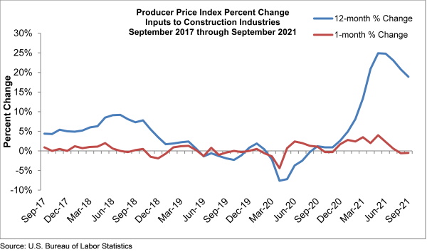 Construction input prices declined 0.5% in September, according to an Associated Builders and Contractors analysis of U.S. Bureau of Labor Statistics’ Producer Price Index data released today. Nonresidential construction input prices fell 0.4% for the month.