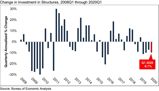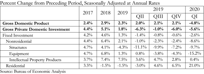 The U.S. economy contracted at an annualized 4.8% rate during the first quarter of 2020 as a result of the ongoing global pandemic, according to an Associated Builders and Contractors analysis of data released today by the U.S. Bureau of Economic Analysis. The decline in GDP is largely a reflection of the final three weeks of March, which devastated the economy.