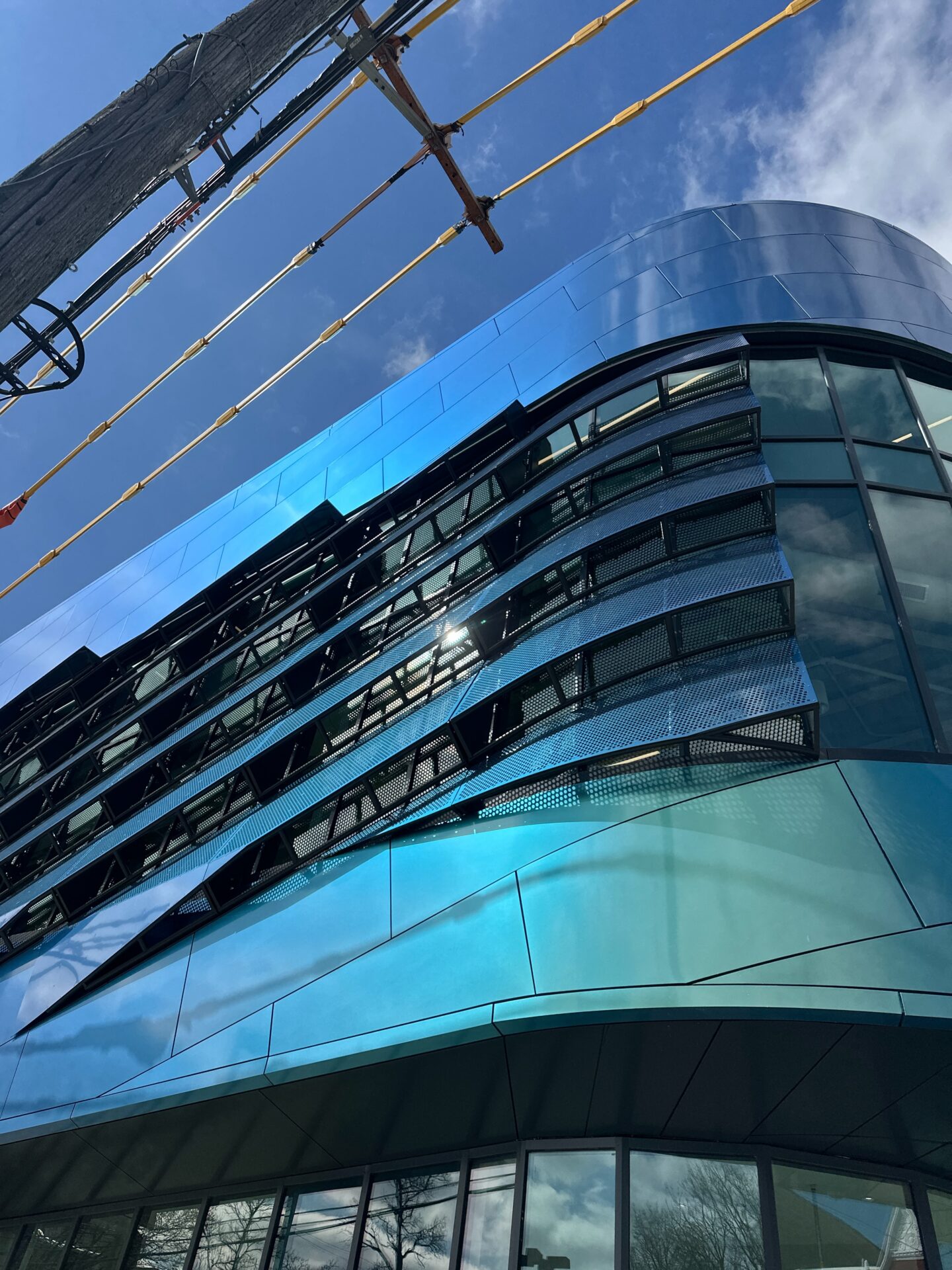 The decision to use ACM was driven by the material’s ability to accommodate the building’s complex forms. Metal Design Systems Inc. fabricated the panels, and Tuschall Engineering installed them. Coordination between the architect, fabricator, and installer played a key role in executing the design intent.