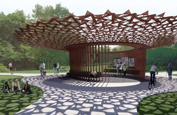 Baker and her collaborators intend to bring the design to fruition to replace the simple bollard that currently marks the beginning of a multi-use trail. They envision the structure, with its interplay of light and shadow, as a welcoming space for people to enjoy the outdoors together, or a backdrop for a group photo to commemorate a long bike ride on the Greenway.