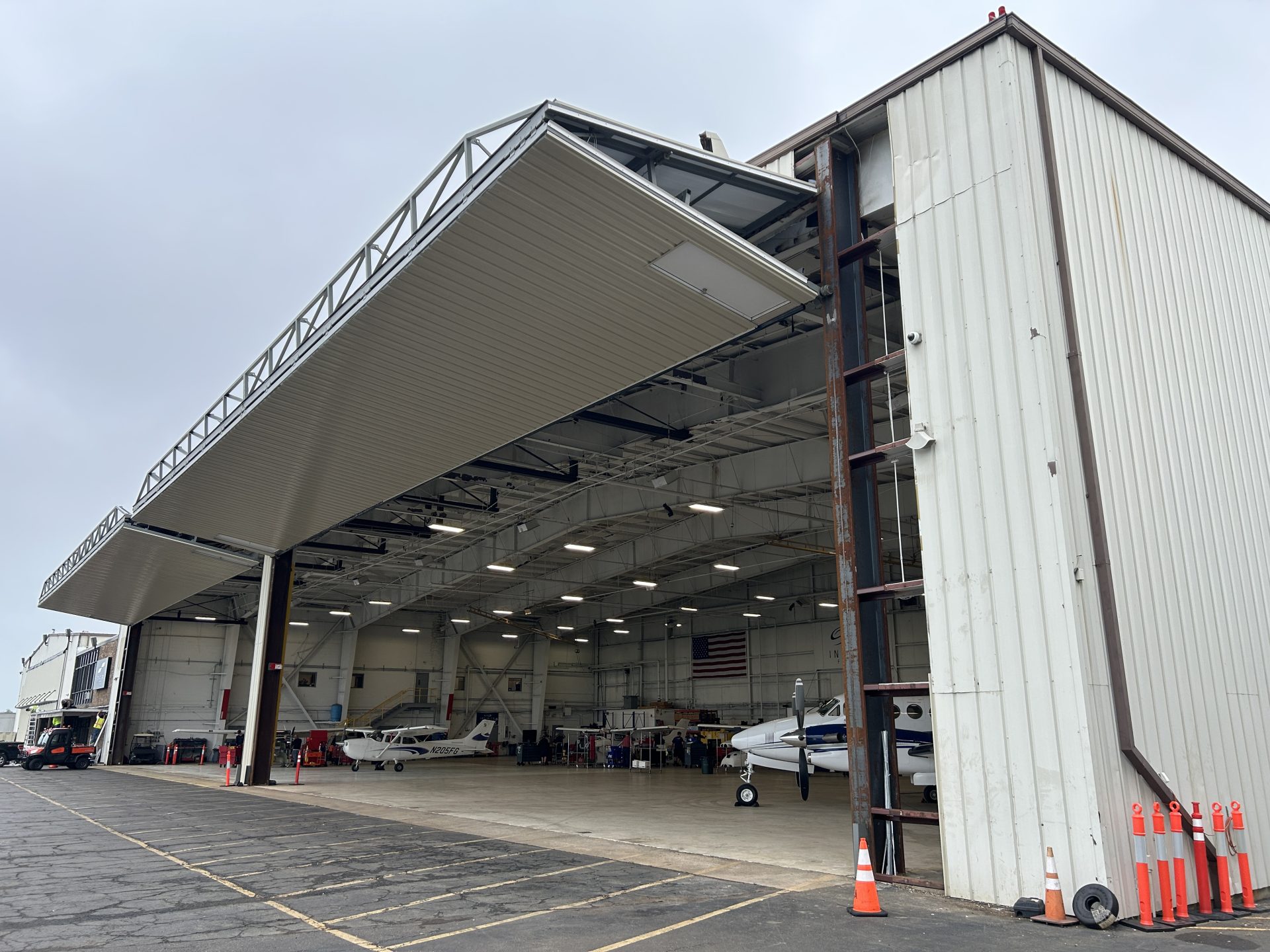 The goal of this project was to maximize the potential of the existing structure, allowing end users to focus their attention and budget on what they were after: a quality hangar door. Due to the size of the doors in this application, collaboration with an engineer ensured the existing hangars could accommodate new hangar doors. Minimal extra bracing was needed, considering the doors are much more substantial than the replaced ones.
