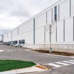 For a parcel adjacent to the main building, Reid Lerner Architects designed a 3716.12 m2 (40,000 sf) metal building system to connect to the main building. It has recessed, back-to-back loading docks with a concrete platform in between connecting the buildings.